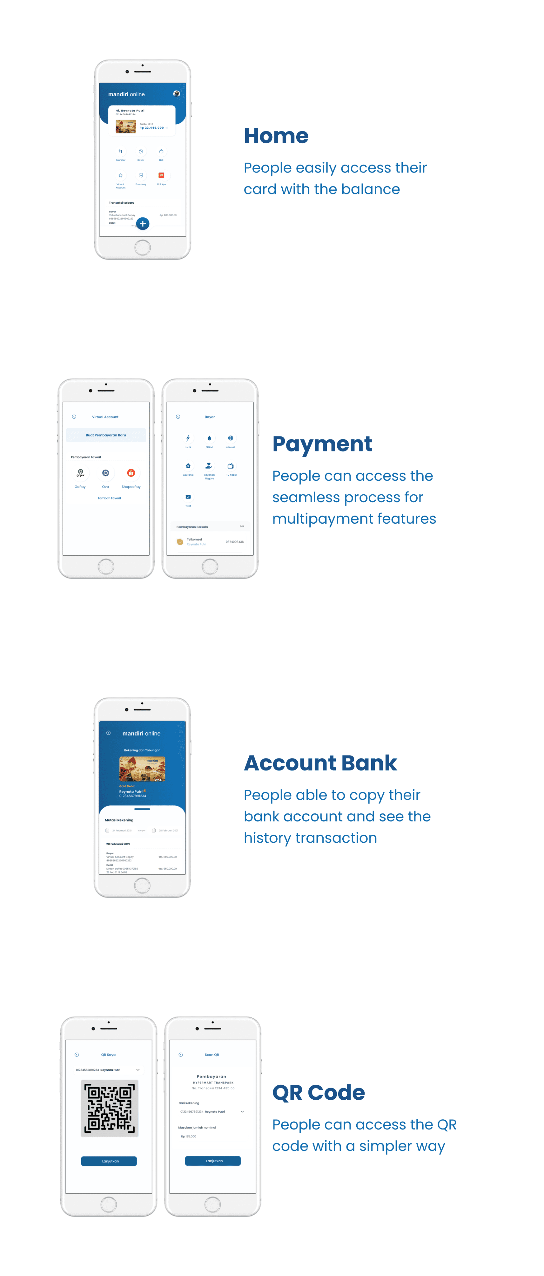 Based on observations, we offered solutions which were specific to redesign the online payment flows (virtual account), QR code and adds the cardless feature.
